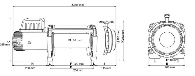 | C | Висота про підстави до самої верхньої точки лебідки | 265 мм |