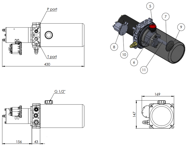 Міні-маслостанція HIDROS HHP/D5-1916 призначена для роботи з різними гідроциліндрами. Вона оснащена електродвигуном потужністю 0.8 кВт і працює при напрузі 24 В DC, з швидкістю обертання 3500 об/хв, максимальним робочим тиском до 220 бар. Насос станції має робочий об'єм 0.5 см3/об. Масляний бак об'ємом 2 літри виконаний зі сталі і має циліндричну форму. Установка здійснюється у вертикальному положенні.