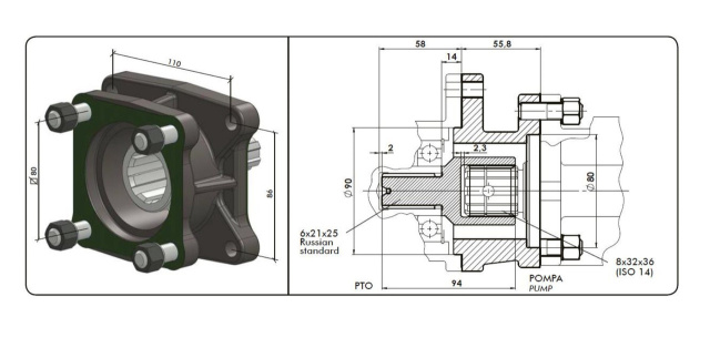 Адаптер перехідник КВП ISO 14/DIN 5462 під насос НШ призначений для підключення насоса або гідромотора до коробки відбору потужності (КВП). Цей перехідник дозволяє використовувати імпортні коробки відбору потужності, сумісні з кріпленнями ISO 14/DIN 5462, разом із радянськими насосами або гідромоторами типу НШ. Він відіграє ключову роль у адаптації обладнання з різними стандартами, забезпечуючи надійне з'єднання та сумісність.