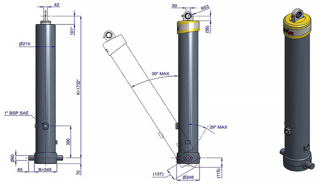 | Максимальне навантаження циліндра (початок перекидання) | 345 кН |