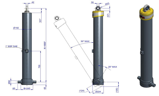 | Максимальне навантаження циліндра (початок перекидання) | 245 кН |