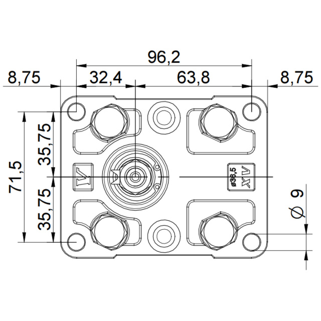 Фланець даної моделі має діаметр 36.5 мм. Стандартний вал: конічний 1:8 ø17.4 M12x1.5 шпонка 4. Насос обертається за годинниковою стрілкою. Ви можете змінити його напрямок без необхідності додавання будь-яких компонентів (діє для всіх версій моделей серії, крім тих, у яких випускний або впускний отвір знаходиться на передньому фланці), щоб адаптувати продукт до ваших потреб.