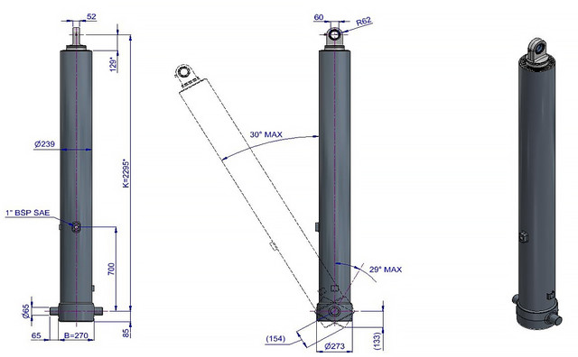 | Максимальне навантаження циліндра (початок перекидання) | 515 кН |