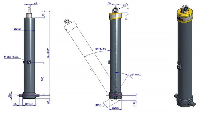 | Максимальне навантаження циліндра (початок перекидання) | 295 кН |