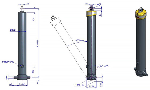 | Максимальне навантаження циліндра (початок перекидання) | 245 кН |