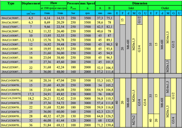 Вхідний отвір: E - 40, F - 20, d - M6-6H, M - M20 x1,5, G - G3