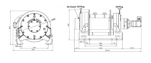 Лебідка гідравлічна тягова 20 т Hammer Winch (пневматичне керування, без тросів)