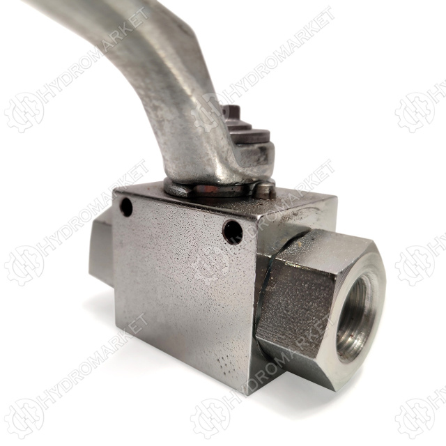 DN 10 G3/8 PN500 — Кульовий кран, дволінійний кран для високого тиску, призначений для трубного (різьбового) монтажу безпосередньо в гідравлічній лінії. Сталевий корпус має оцинковане покриття для захисту від корозії, внутрішній кульовий елемент виконаний з хромованої сталі, важіль управління – з алюмінію.