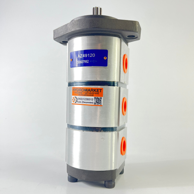 Гідравлічний шестеренний насос моделі 222A11/8/6X120JD / AZ49120 групи 20+20+20, з об'ємом 11+8+6 см³/об, забезпечує стабільну роботу в гідросистемах спецтехніки з напруженим навантаженням. Призначений для машин, де потрібне компактне, надійне рішення з високим ККД для модернізації гідросистем тракторів, будівельної та сільськогосподарської техніки.