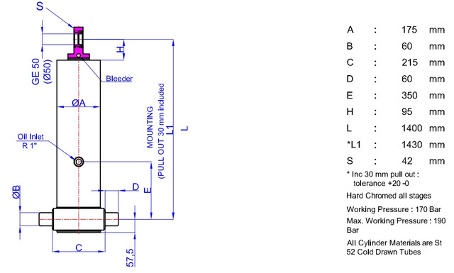 | Діаметр штока | 175 мм |