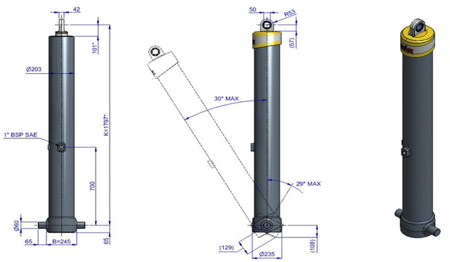 | Максимальне навантаження циліндра (початок перекидання) | 295 кН |