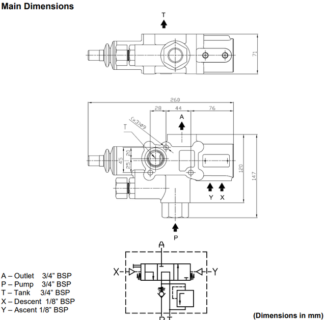 У конструкції розподільника DTCA130H передбачено запобіжний клапан, який захищає гідроциліндр і насос від надлишкового тиску, гарантуючи рівномірне опускання кузова самоскида.