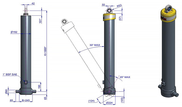 | Максимальне навантаження циліндра (початок перекидання) | 245 кН |