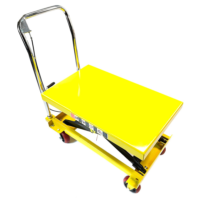 Підйомний стіл 350 кг × 0,9 м – це надійне та міцне рішення для підйому та переміщення вантажів вагою до 350 кг. Максимальна висота підйому становить 0,9 м, що робить його зручним для роботи в майстернях, на складах та у виробничих цехах. Гідравлічний механізм забезпечує плавне та безпечне піднімання і опускання, а міцна конструкція гарантує стійкість при роботі з важкими вантажами.