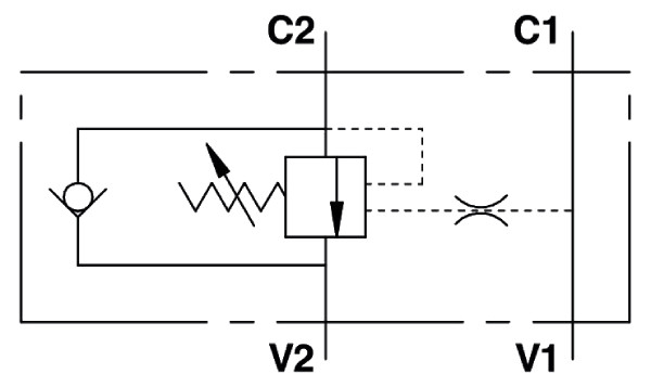 Односторонні гальмівні клапани VBCD SE A використовуються для забезпечення плавного руху навантажених компонентів гідросистеми. Крім того, ці клапани виконують функцію одностороннього гідрозамку, обмежуючи максимальний тиск у гідросистемі і тим самим запобігаючи кавітації.