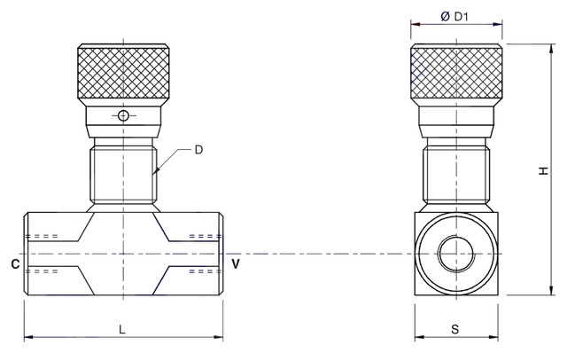 Дроселі VRFB 90° призначені для регулювання витрати робочої рідини в обох напрямках. Оскільки компенсація тиску не передбачена, регулювання витрати залежить від тиску та в'язкості мастила. Вони відрізняються високою точністю налаштування та практично повною герметичністю у закритому стані. Регулюючий елемент голкового типу.