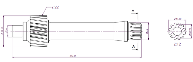 - Довжина валу: 334 мм