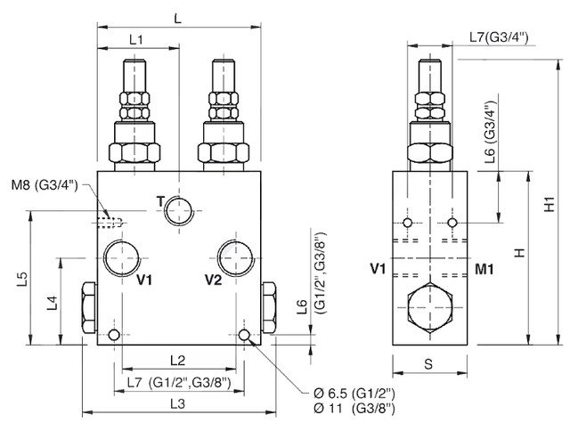 | V1 - V2 | T | L | L1 | L2 | L3 | L4 | L5 | L6 | L7 | H | H1 | S |