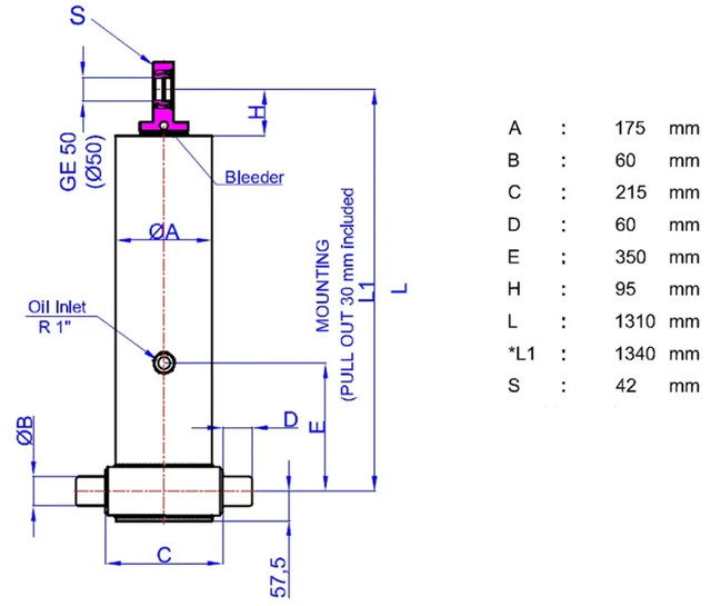 Гідроциліндр серії GHS від виробника Hidromas являє собою високоякісний гідравлічний пристрій, спроектований для застосування в фронтальних навантажувачах та іншій будівельній техніці.Цей гідроциліндр має ефективний діаметр 155 мм та 5 штоків, загальний хід 5125 мм