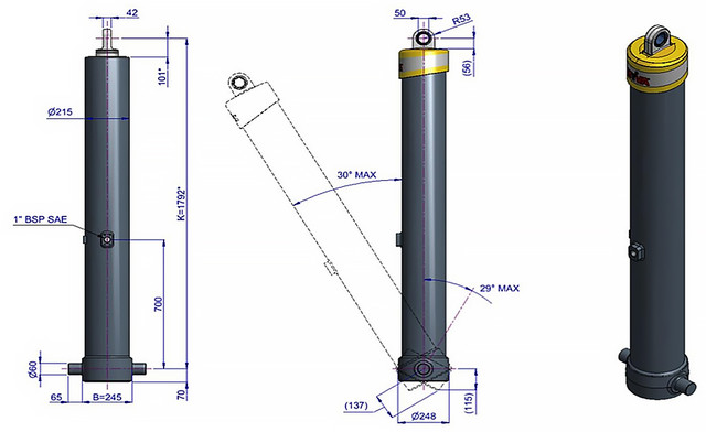 | Максимальне навантаження циліндра (початок перекидання) | 345 кН |