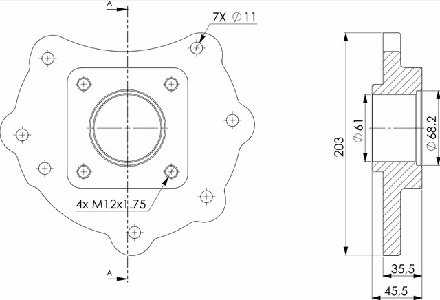 Плита для Mercedes Atego G60 служить як перехідник, що фіксує вал відбору потужності у відповідному місці коробки передач. Перехідна плита кріпиться до коробки перемикання передач (КПП) 7 болтами, що забезпечує надійність і жорсткість з'єднання. Завдяки використанню якісної сировини при виготовленні, виріб показує відмінну зносостійкість в процесі використання.
