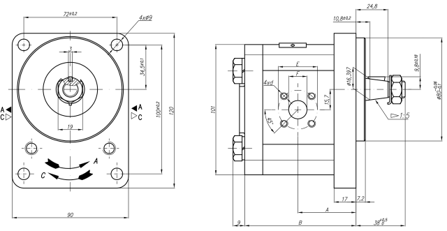 Вхідний отвір: E - 40, F - 20, d - M6-6H