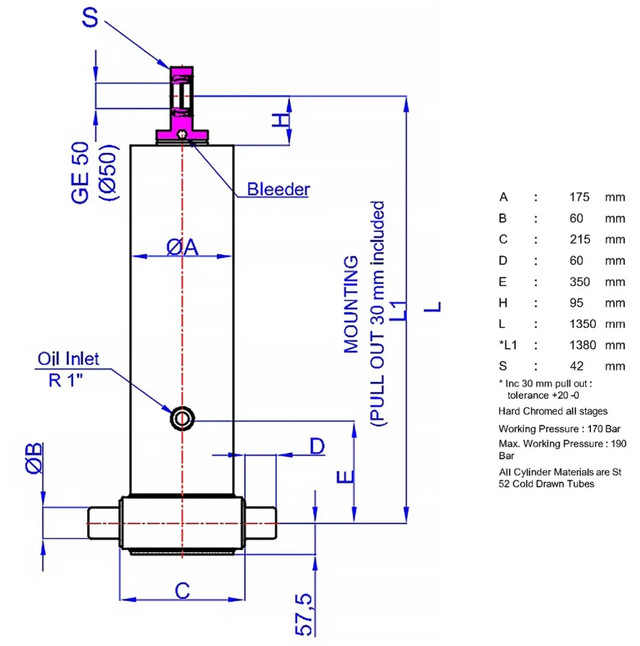 | Діаметр штока | 175 мм |