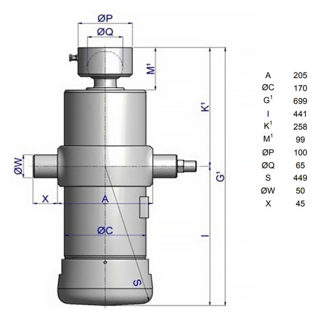 Модель UMB 149-5-2280-K258-50-3/4"-HC від HYVA оснащена п'ятьма штоками та забезпечує вантажопідйомність від 13 до 25 тонн. При робочому тиску до 220 бар та діаметрі першого штока 149 мм цей гідроциліндр гарантує стабільне та ефективне виконання операцій з підйому та опускання вантажів. Його загальна довжина у розкритому стані становить 2280 мм, що робить його універсальним рішенням для різних завдань. Надійність, продуктивність та довговічність роблять цю модель ідеальним вибором для інтенсивного використання.