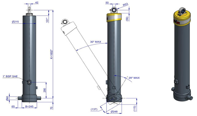| Максимальне навантаження циліндра (початок перекидання) | 345 кН |