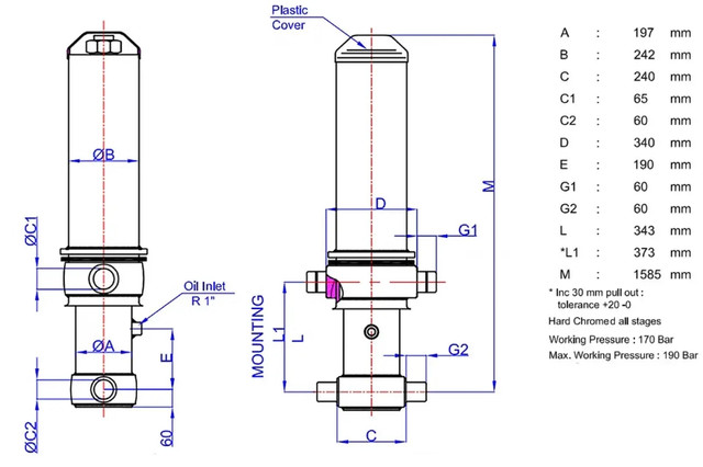 Гідроциліндр GHS 175-5-6200-L343 Н від Hidromas є високотехнологічним гідравлічним пристроєм, розробленим спеціально для фронтальних навантажувачів з обшивкою. Даний гідроциліндр має ефективний діаметр 175 мм та 5 штоків, здатний підіймати до 40 тонн, досягаючи загального ходу 6200 мм