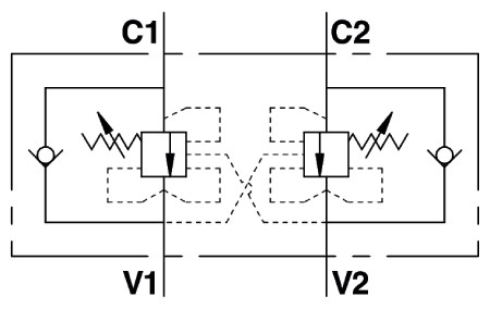 Гальмівні врівноважуючі (контрбалансні) клапани VBCD DE CC використовуються для забезпечення плавного руху навантажених компонентів гідросистеми. Крім того, ці клапани виконують функцію двостороннього гідрозамку, обмежуючи максимальний тиск у гідросистемі і тим самим запобігаючи кавітації.