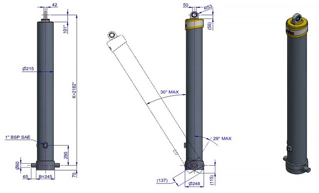 | Максимальне навантаження циліндра (початок перекидання) | 345 кН |