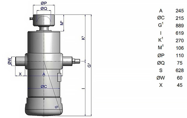Гідроциліндр Hyva оснащений хромованими штоками (HC), що забезпечує високу стійкість до корозії та довговічність. Максимальний робочий тиск 220 бар гарантує надійну роботу у важких умовах. Робочий об'єм циліндра становить 57,9 літра, а загальний об'єм — 62,3 літра, що у поєднанні з максимальною витратою насоса 143 літри за хвилину забезпечує високу ефективність та продуктивність. Вага циліндра становить 165 кг, а стандартний впуск олії 3/4˝ BSP полегшує його інтеграцію до існуючих гідравлічних систем. Цей гідравлічний циліндр Hyva є ідеальним вибором для тих, хто потребує потужного та надійного обладнання для виконання складних підйомних завдань.