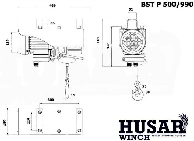 Тельфер електричний від польського виробника Husar Winch. Цей механізм широко використовується на будівництві, складах, заводах, де часто доводиться піднімати / опускати важкі об'єкти. Тельфер має наступний аналог.