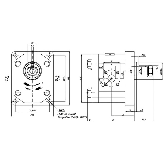 Гідравлічний шестеренний насос Hydro-pack 20A19X207 групи 20, з об'ємом 19см3/об, має ліве обертання (проти годинникової стрілки). Застосовується для встановлення на трактор та іншу техніку.