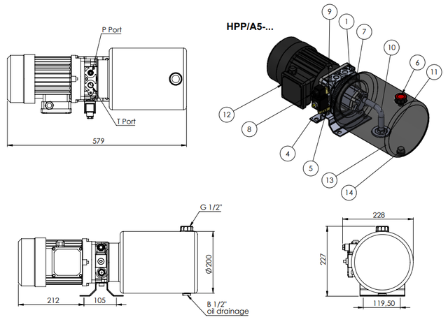 Гідравлічна міні-маслостанція від HYDRO-PACK оснащена електромотором потужністю 0.75 кВт і працює при напрузі 380 V AC, швидкість обертання 1500 об/хв, максимальний робочий тиск до 210 бар. Насос станції має робочий об’єм 1.3 см3/об. Масляний бак об’ємом 8 л виконаний зі сталі та має циліндричну форму. Пристрій встановлюється в горизонтальному положенні.