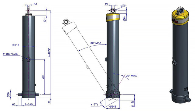 | Максимальне навантаження циліндра (початок перекидання) | 345 кН |