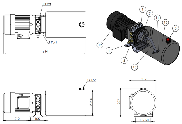 Міні-маслостанція HYDRO-PACK HPP-A1-2281 призначена для роботи з різними підйомниками. Вона оснащена електродвигуном потужністю 1.1 кВт і працює при напрузі 380 В AC, швидкість обертання 1500 об/хв, максимальний робочий тиск до 105 бар. Насос станції має робочий об'єм 3.7 см3/об. Масляний бак об'ємом 10 літрів виконаний зі сталі і має циліндричну форму. Пристрій встановлюється в горизонтальному положенні.