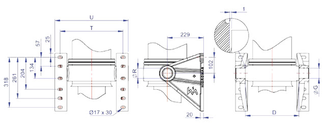 Верхнє кріплення праве Ø 65.8 Hidromas призначене для надійної фіксації гідроциліндрів типу 43135, 43155, 43175, 43197, 43220. Виріб має зносостійкість навіть у найсуворіших умовах. Відрізняється міцністю, стійкістю до перевантажень та оптимальною масою. Стандартний кронштейн забарвлений кольором RAL 1036 (золотистий).