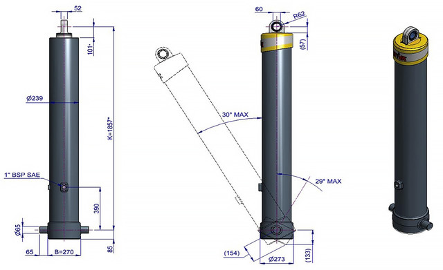 | Максимальне навантаження циліндра (початок перекидання) | 440 кН |