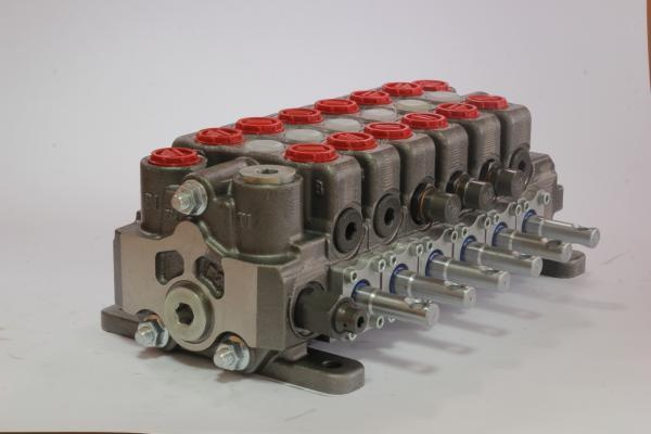KV-17 секційний гідравлічний розподільник, оснащений клапанами зворотного навантаження в кожній секції, відрегульованими запобіжними клапанами з функціями antichoc & anti cavitation. Додатково може бути обладнаний актуаторами для різних варіантів управління і декількома варіантами положення золотника.