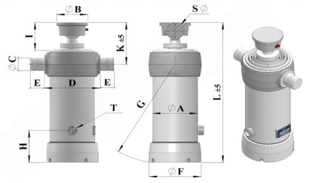 Гідроциліндр UCMB-185-8-2000-000-C195 Hydrolider призначений для роботи у складі вантажних автомобілів та спеціалізованої техніки. Оснащений вісьмома штоками та має ефективний діаметр 185 мм, що забезпечує високу стійкість і надійність під час експлуатації. Загальний хід циліндра становить 2000 мм, а максимальний робочий тиск сягає 250 бар, що дозволяє ефективно керувати підйомом і опусканням кузова навіть за інтенсивних навантажень.