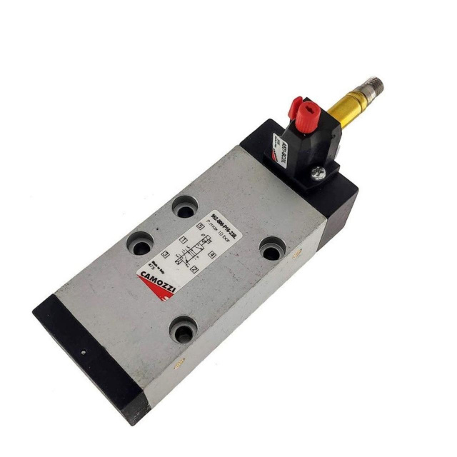 Золотниковий розподiльник Camozzi 952-000-P16-23ILз одностороннім електропневматичним керуванням, 5/2 моностабільний з пневмоповерненням і ручним дублюванням - прапорець для монтажу на плиту за ISO 5599/1 Монтаж на плиті розмір 2.
