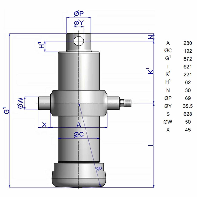 Циліндр легкий, використовує менше олії, що дозволяє швидше підіймати та опускати кузов, і він міцний і не потребує обслуговування. Перекидальна маса розрахована на 220 бар. Елементи кріплення необхідно замовляти окремо.