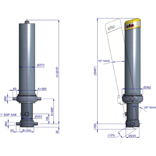 Створений для різних застосувань цей гідроциліндр з діаметром 179 мм і 5 штоками здатний піднімати до 54 тонн, досягаючи загального ходу 8130 мм. Володіючи максимальним робочим тиском 190 бар, цей гідроциліндр Hyva витримує більші навантаження, що, у свою чергу, дозволяє вантажівкам бути оснащеними компактнішими гідроциліндрами, економлячи місце і вагу. Циліндр підйому кузова FC A179-5-08130-000-K0486 серії Alpha в основному використовується в поєднанні з прямим з'єднанням корпусу та цапфовим типом з'єднання.