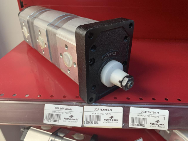 Гідравлічний шестеренний насос Hydro-pack 20A16X067/16X156/16X066-H групи 20+20+20, з об'ємом 16+16+16 см3/об, має ліве обертання (проти годинникової стрілки). Застосовується для встановлення на всі види техніки і на трактор.
