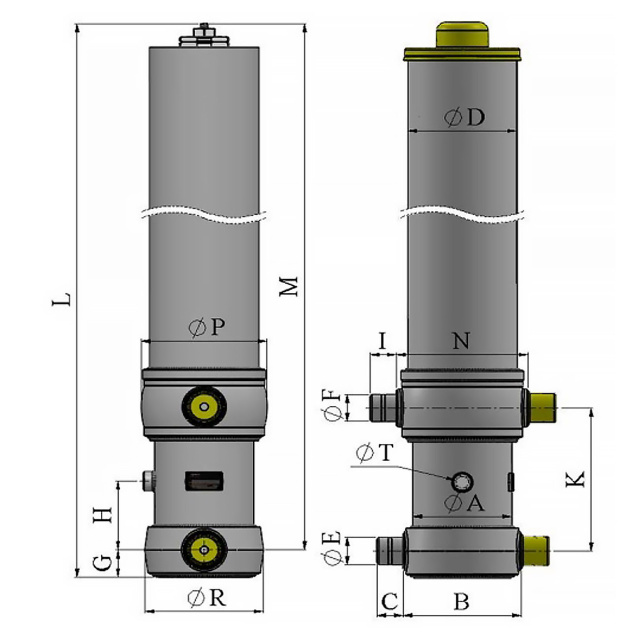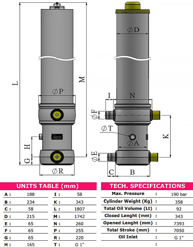 З цим гідроциліндром ви можете розраховувати на виняткову продуктивність та надійність в умовах підвищеного навантаження. Його конструкція забезпечує ефективну передачу сили та управління, роблячи його ідеальним вибором для різних завдань у будівництві, вантажоперевезенні та інших важких застосуваннях.
