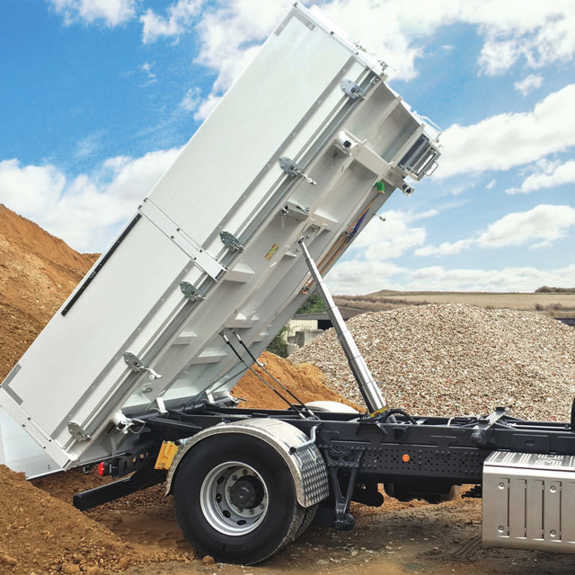 Використання підкузовних циліндрів Hyva гарантує високу вантажопідйомність та кілька способів розвантаження. Використання цилиндра з кульовою опорою для трьохстороннього розвантаження дозволяє виконувати його з боку та назад. Hyva рекомендує завжди використовувати шарнірну опору циліндра та клапан обмеження підйому.