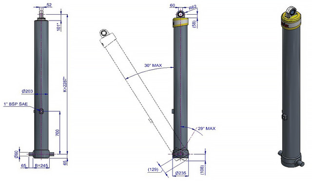 | Максимальне навантаження циліндра (початок перекидання) | 440 кН |