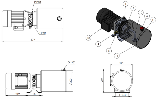 Міні-маслостанція HYDRO-PACK HPP\A1-0204 підходить для роботи з різними доклевелерами. Вона оснащена електромотором потужністю 0.75 кВт і працює при напрузі 380 В AC, швидкість обертання 1500 об/хв, максимальний робочий тиск до 150 бар. Насос станції має робочий об'єм 1.8 см3/об. Масляний бак об'ємом 8 літрів виготовлений зі сталі і має циліндричну форму. Пристрій встановлюється в горизонтальному положенні.
